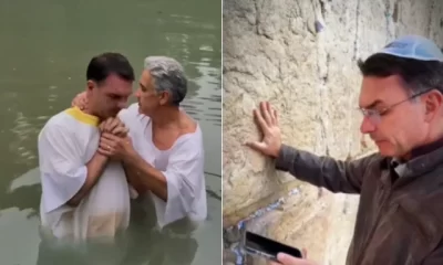 O senador Flávio Bolsonaro (PL-RJ) participou de um batismo religioso no Rio Jordão, em Israel, na última quinta-feira (22). A cerimônia ocorreu ao lado da esposa...